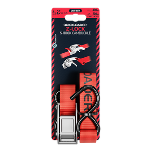 QUICKLOADER® Cambuckle Z-Lock S QLZ400LD-S 400KG is a two-piece tie-down with S-hooks on both ends. Best for places that have anchor loops installed.